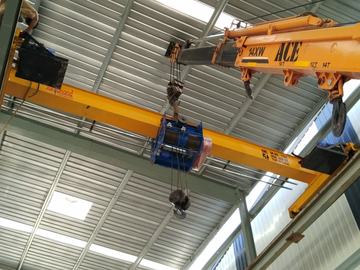 Erection of EOT Crane in Vadodara. 5 Ton Single Girder EOT Crane Span 6.6 Mtr Height - 7 Mtr Location - POR, Vadodara. We sahjananad infratech is the leading manufacturer of EOT Crane and Pre Engineered Building in Vadodara, Gujarat.